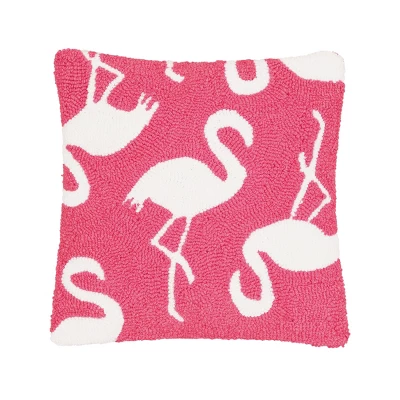 Brighten up any space with the Flamingo Hooked Pillow. A pink-on-white flamingo motif and unique hooked texture add an element of fun to your decor. This pillow pairs well with other patterns and colors due to its versatile design. Make a statement with this one of a kind throw pillow. Your home will feel a bit more comfy and welcoming with this beautiful pillow. A nice way to add a cozy touch to your space.