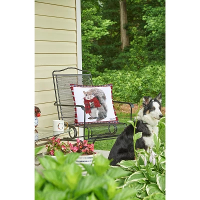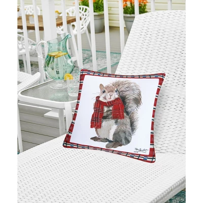 Celebrate the season with a little lighthearted fun. This digitally printed winter squirrel holiday pillow is the perfect way to lighten up your holiday decor with a little Christmas whimsy. Designed in collaboration with licensed artists and mother/son duo, Two Can Art, the Plaid Squirrel pillow features a charming squirrel all ready for winter on a crisp white ground. Fade resistant this pillow is crafted with a soft woven polyester cover and plush polyfill for quick drying. This Plaid Squirrel pillow sits comfortably both indoors and out bringing the perfect finishing touch to your wintertime decor. Filled and finished in the USA.