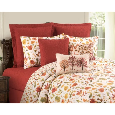 Stroll through an enchanting fall wonderland with the Autumn Forest Pillow. This truly captivating piece of hand-crafted ribbon art features a stunning array of intricate leaves, precisely crafted of ribbon to create a unique texture and artisanal flair. Mix and match with coordinating textiles to create a spectacular autumn look. A soft polyester cover is finished with a coordinating piped edge and soft polyester filling. Spot cleaning recommended.