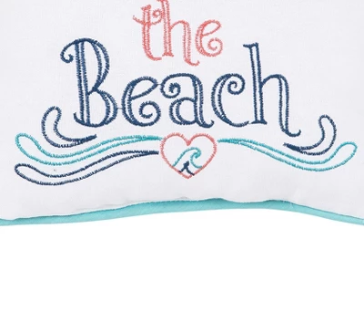 Bring the beach to your home with this charming embroidered decorative mini pillow. Its cool dynamic coastal typographical phrases composed of cute ocean and shore iconographic motifs will bring a fresh breeze to your home anytime. Perfect to use as a small accent pillow for a couch, chair or recliner and makes a great gift.