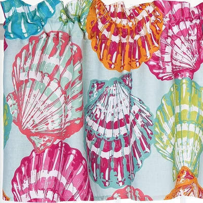 Bring the tropical sunshine and seashells of the beach to your home, without the sand. The Merrit Island ruffled valance features a vibrant scallop seashell pattern in shades of fuchsia, sky blue, tangerine and lime green on a white ground, sure the brighten the room and create a captivating focal point. Measuring 72 inches wide, this valance includes a two inch rod pocket and 1.5 inch decorative header. Crafted of cotton this unlined valance is machine washable for easy care.