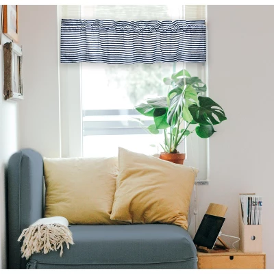 Bring a classically casual look to your home with our Ticking Stripe ruffled valance. The ticking stripe pattern and refreshing color way set the tone for all-season style. This woven unlined valance is finished with a classic hemstitching detail, putting the picturesque finishing touch on your space while a cool breeze wafts through the window. Coordinate with other items from our Ticking Stripe collection to adorn your home with this timeless design. Measuring 72 inches wide, this valance includes a two inch rod pocket and 1.5 inch decorative header. Crafted of cotton this unlined valance is machine washable for easy care.